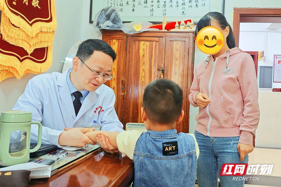 坐诊现场。红网时刻新闻记者 杨莉莎 湘潭报道4岁的山西运城男孩晨晨(化名)不慎骨折,在当地做了手术。可还没过几个月,同样的地方又摔骨折了。“我不想让他再上手术台挨一刀。”看着孩子稚嫩的胳膊,晨晨妈妈抱着保守治疗的想法在网上搜索相关资料,搜到了“湘潭杨氏正骨”。怀揣着希望,她带着孩子不远千里来到湘潭市中医医院求医。接诊的是湘潭市中医医院大伤科主任、正骨科主任曹谦。他仔细体查和阅片后,为晨晨制定了个性化诊疗方案,先通过中医正骨手法功能复位,用医院自制的三黄肿痛散、活血散瘀酊外敷,再加上小夹板配合棉垫固定治疗。几个月后的复查,晨晨恢复得不错,运动功能基本恢复。在湘潭市中医医院正骨科,这样的故事每天都在上演。