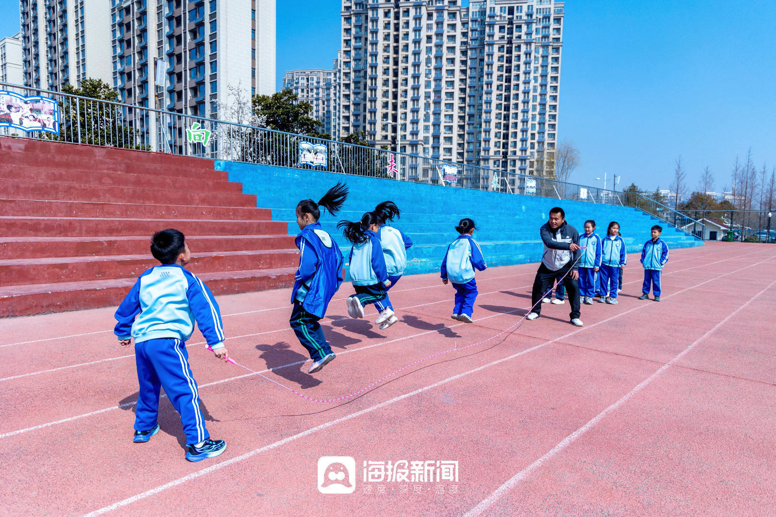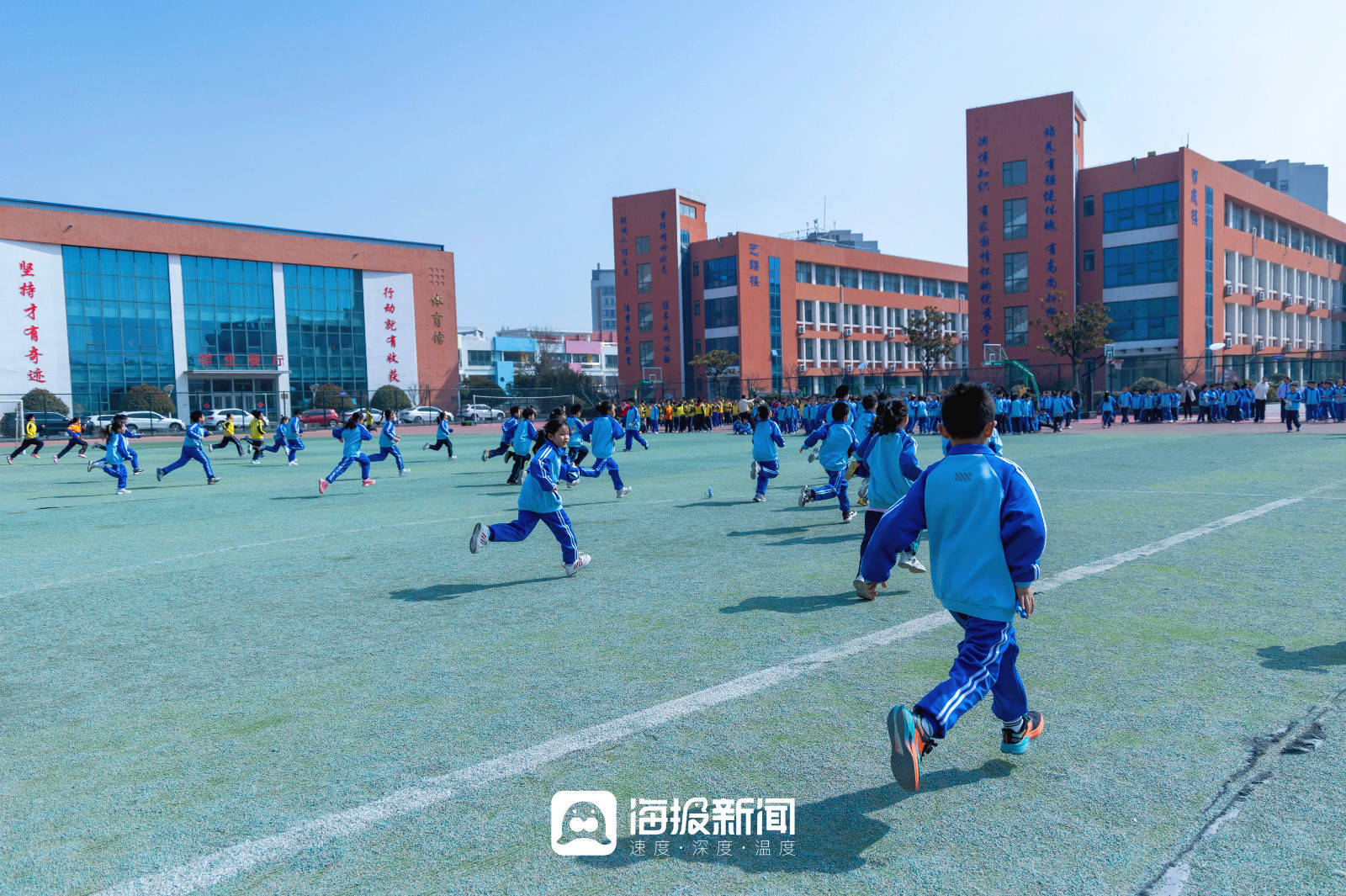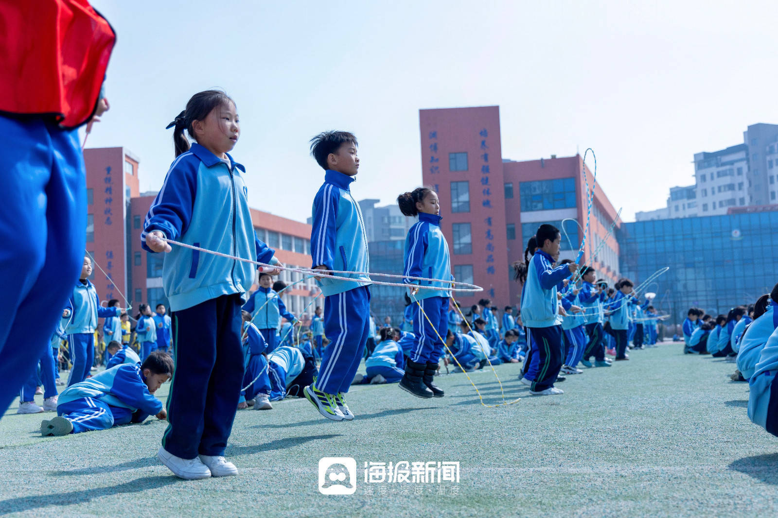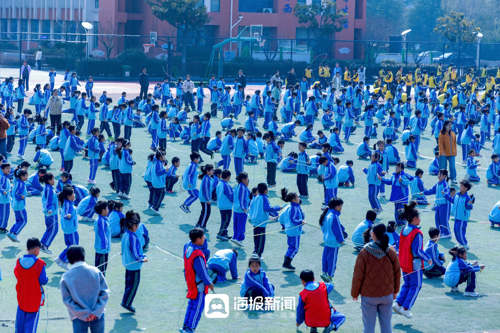 而在山海天实验小学,这个国家层面的要求正在被一点点拆解、落地,它逐渐变成了孩子们课程表上的调整,变成了操场上奔跑的身影,变成班级群里每晚闪烁的运动视频,更变成一个又一个孩子发自内心地说:“我今天还想再去跳一会儿……”