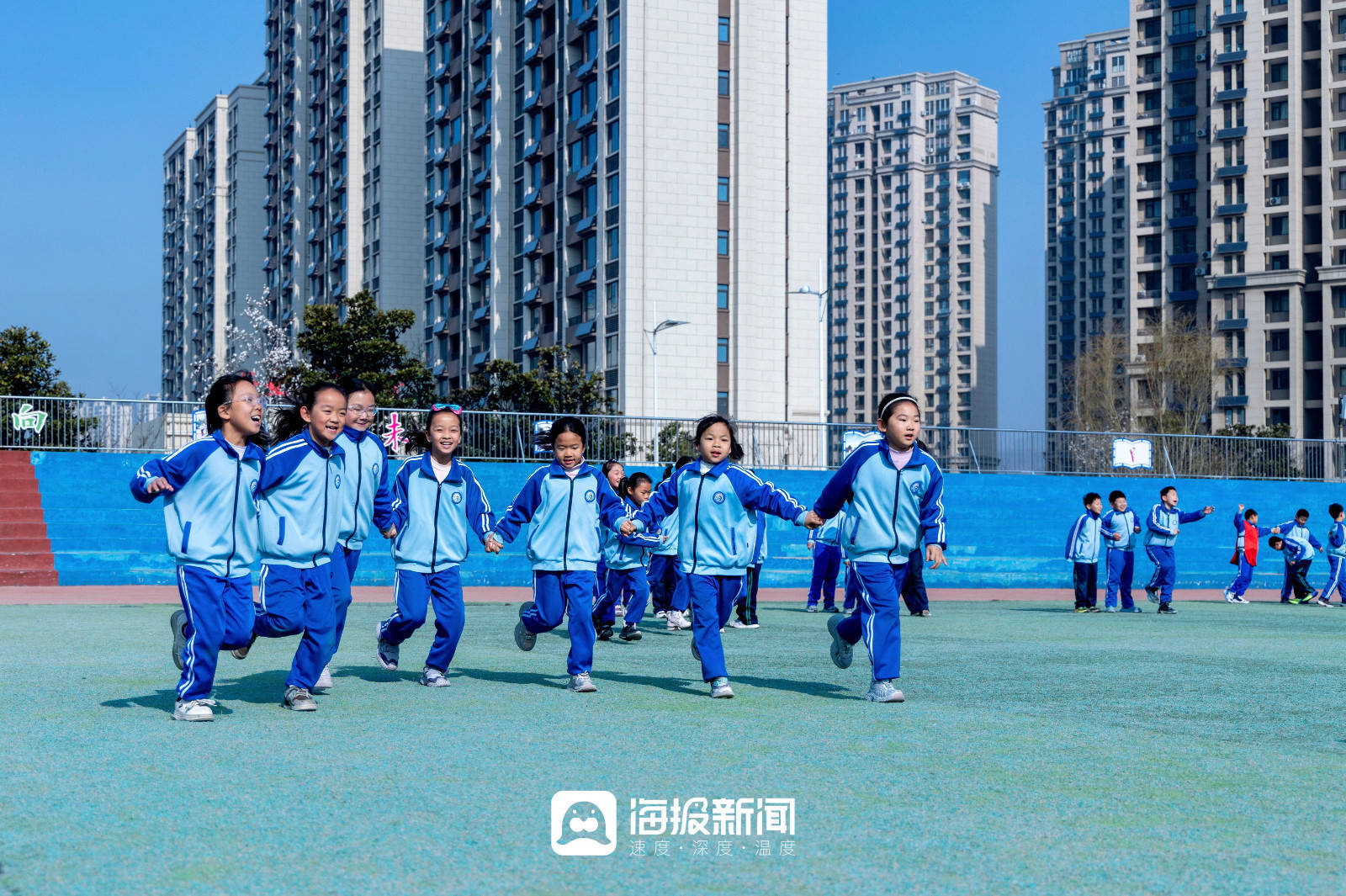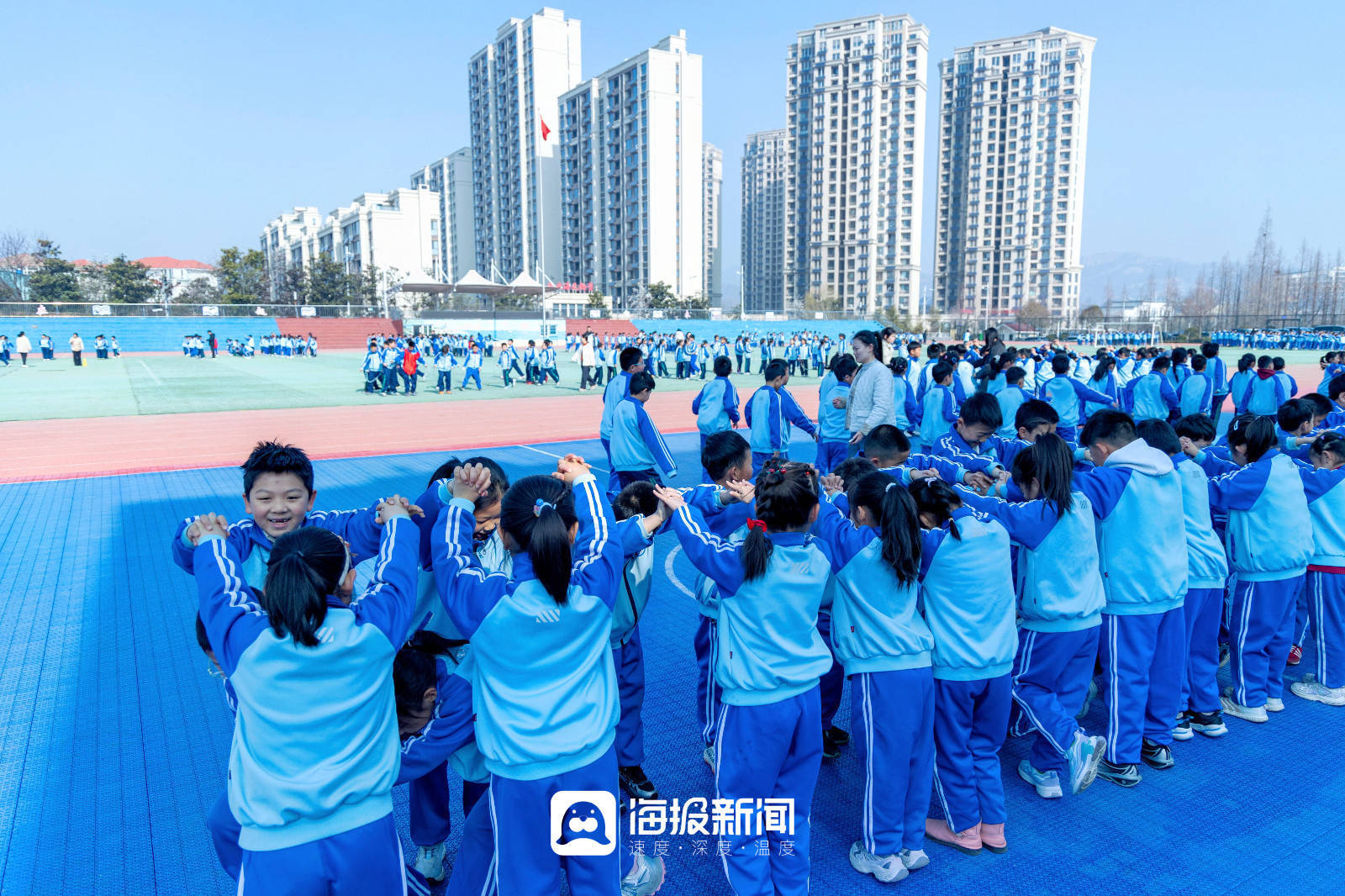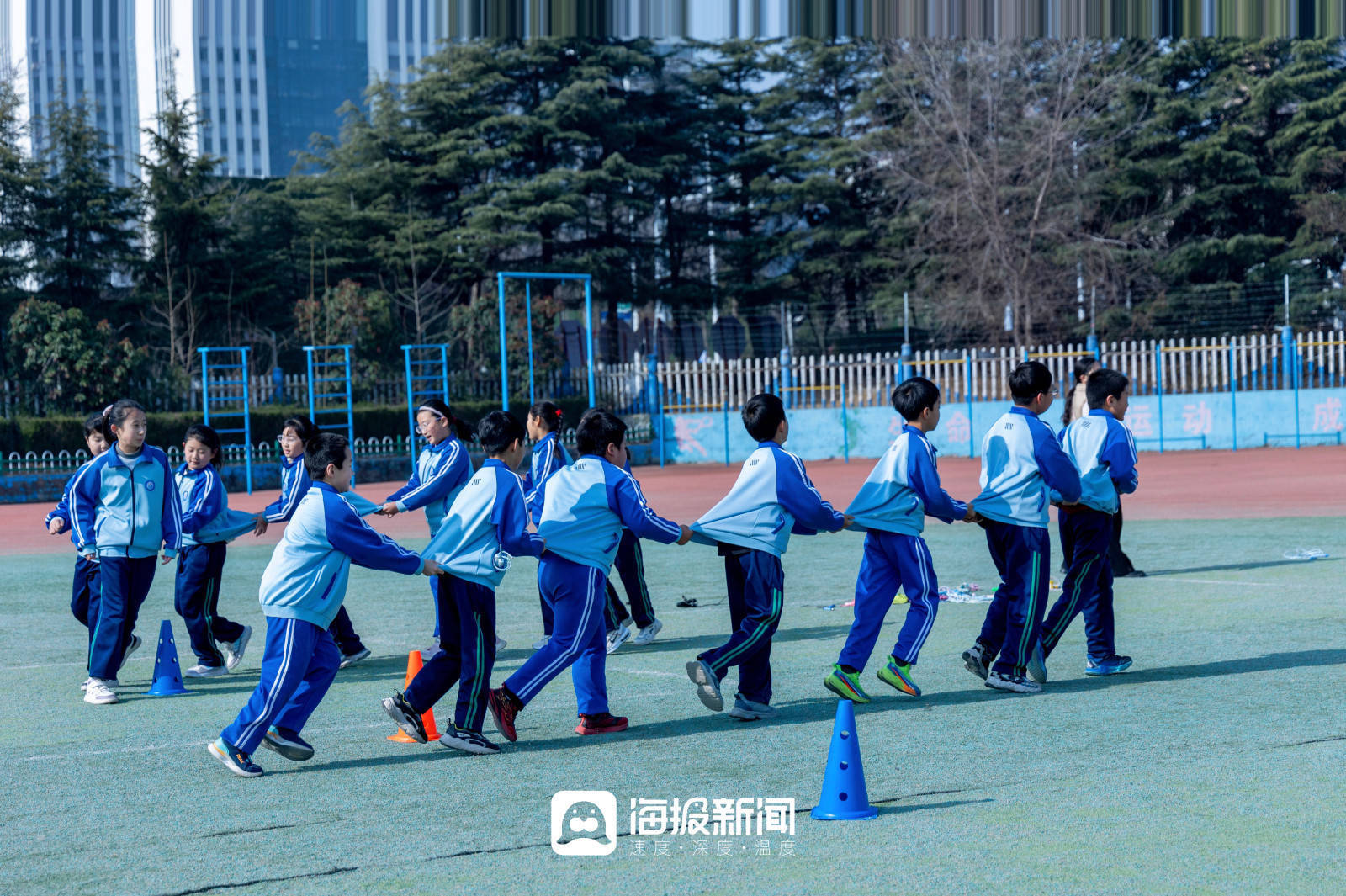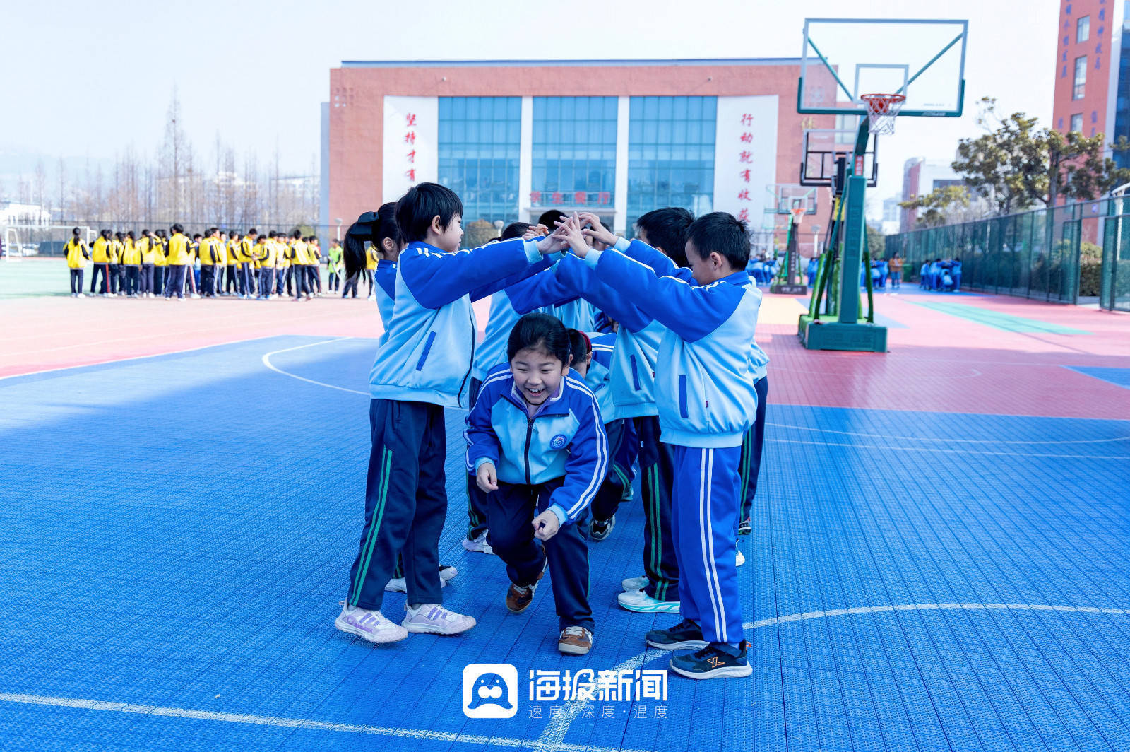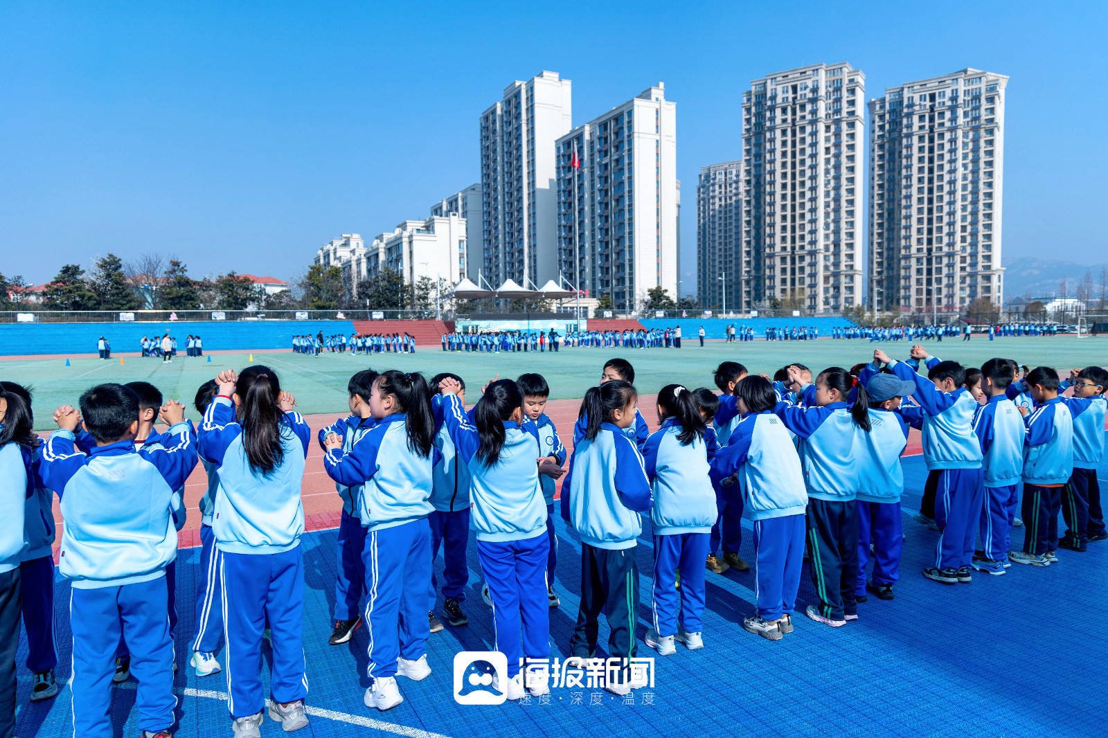 而在山海天实验小学,这个国家层面的要求正在被一点点拆解、落地,它逐渐变成了孩子们课程表上的调整,变成了操场上奔跑的身影,变成班级群里每晚闪烁的运动视频,更变成一个又一个孩子发自内心地说:“我今天还想再去跳一会儿……”