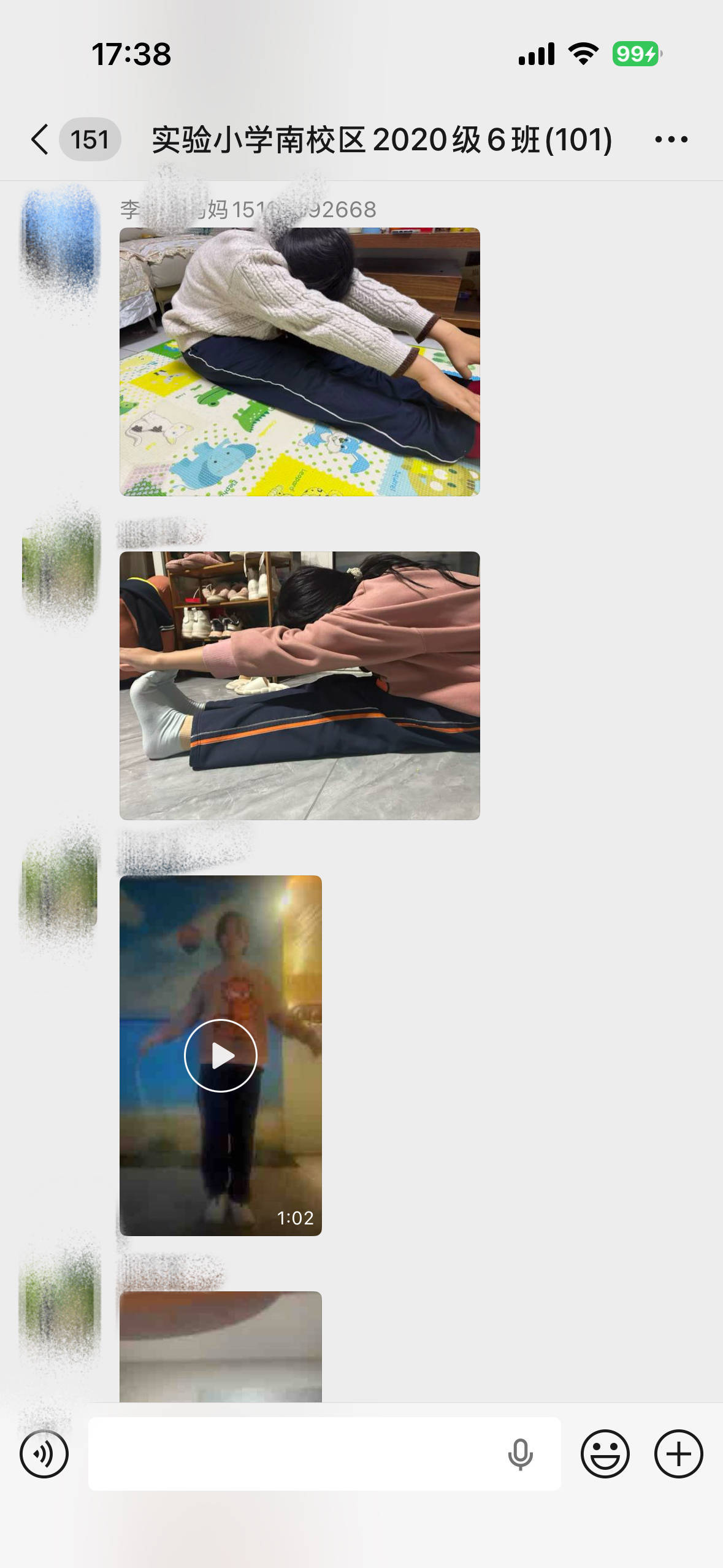 家长们自发在班级群里分享体育锻炼视频。