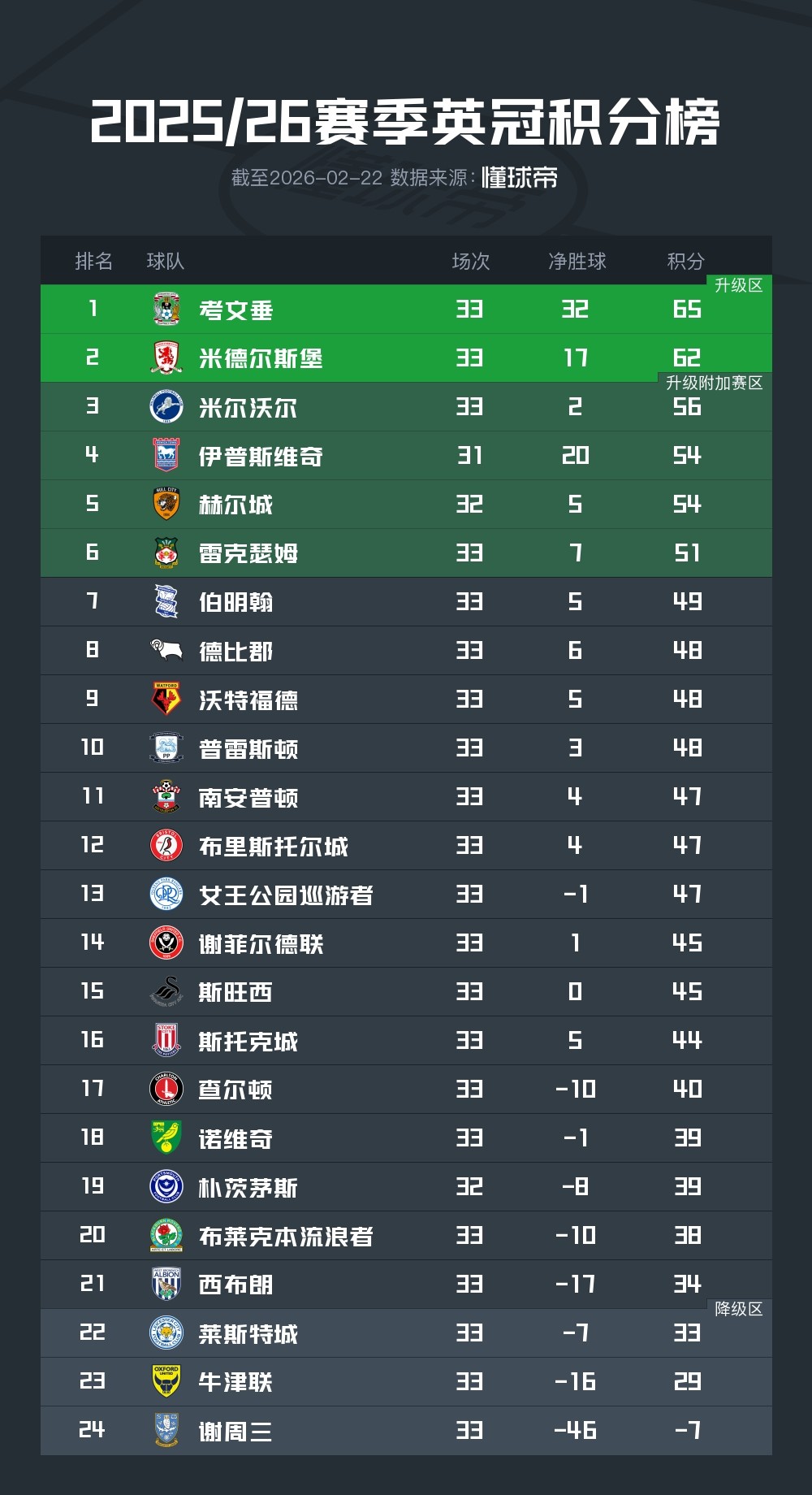 第6轮2-0战胜朴茨茅斯的比赛是球队本赛季唯一一场胜利专业炒股配资门户,近期他们更是遭到了各项赛事11连败。球队目前1胜8平24负积-7分,落后第21名的西布朗41分,正式宣告降级。